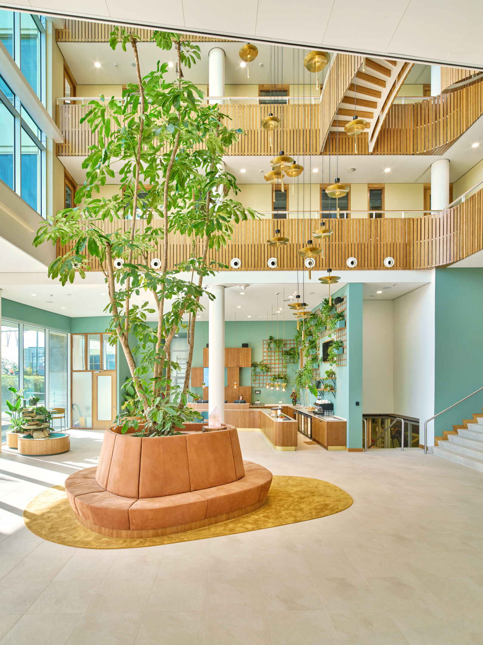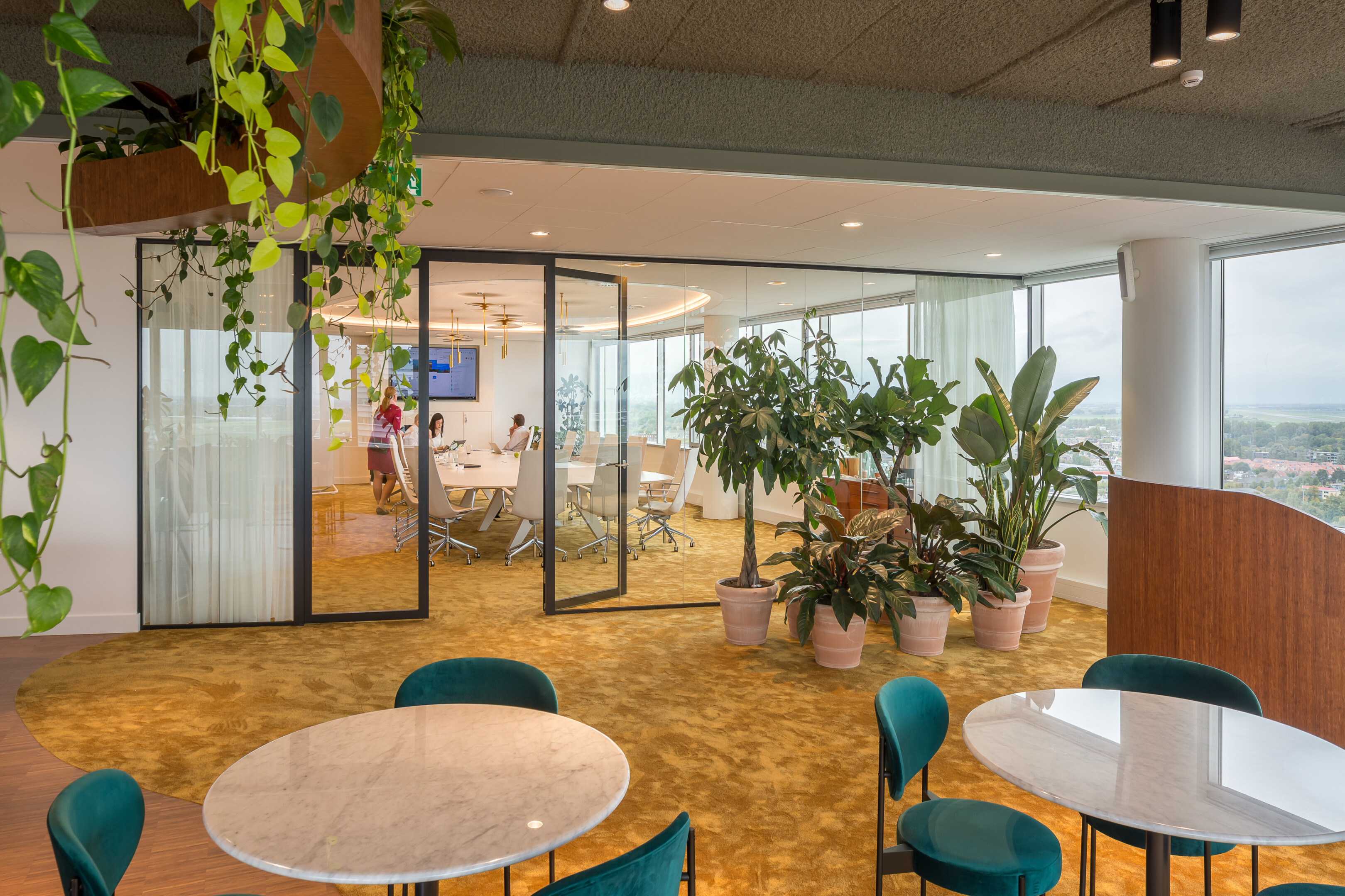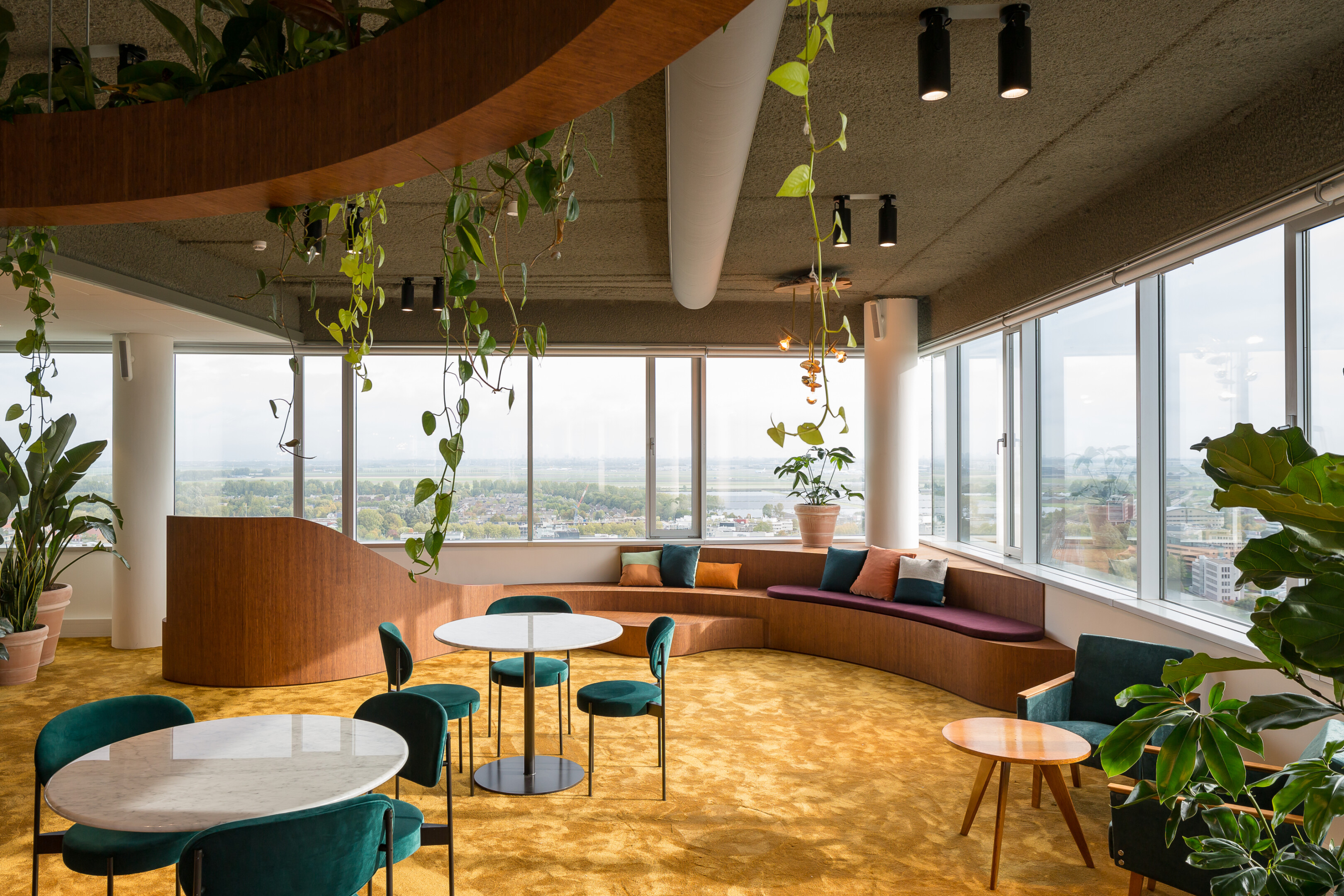 Het kantoorgebouw van Pharos in Hoofddorp is in meerdere opzichten een indrukwekkende verschijning. Volgens concept van adviesbureau De Nieuwe Draai moet Pharos de gezondste werk-community van Europa worden. Het concept, met de circulaire economie als leidraad, is gebaseerd op vier pijlers: maximum health, total energy, zero waste en vibrant community. Op de vloer liggen onder andere donkergekleurd bamboe en een rijk uitgevoerd okergeel saxony tapijt uit de COLOR BOOKS-collectie van LEOXX: de Silky Blush. Ook qua milieuprestaties sluit Silky Blush aan bij het Pharos-concept. Zo is het tapijt onder andere vrij van formaldehyde, klimaatneutraal geproduceerd en GUT-gecertificeerd; daarmee is het geschikt voor projecten die conform BREEAM of LEED worden gebouwd.